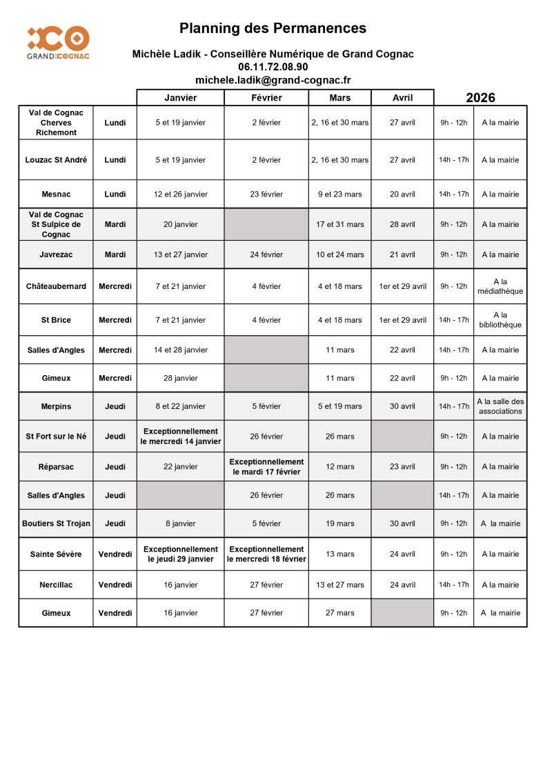 Voici les dates de permanence à NERCILLAC de JANVIER à AVRIL 2026